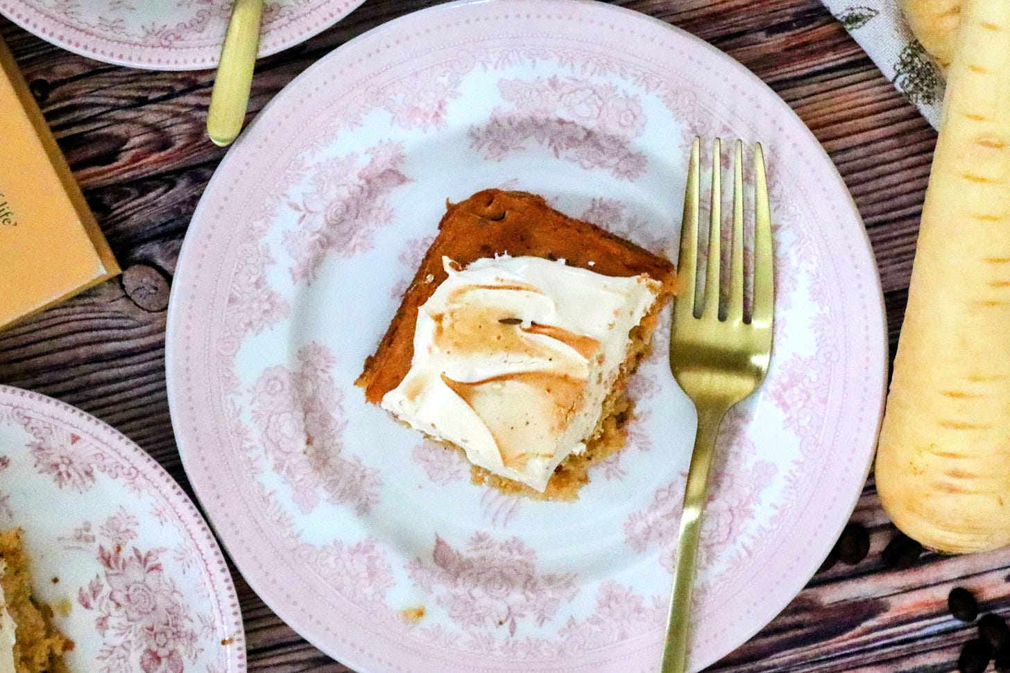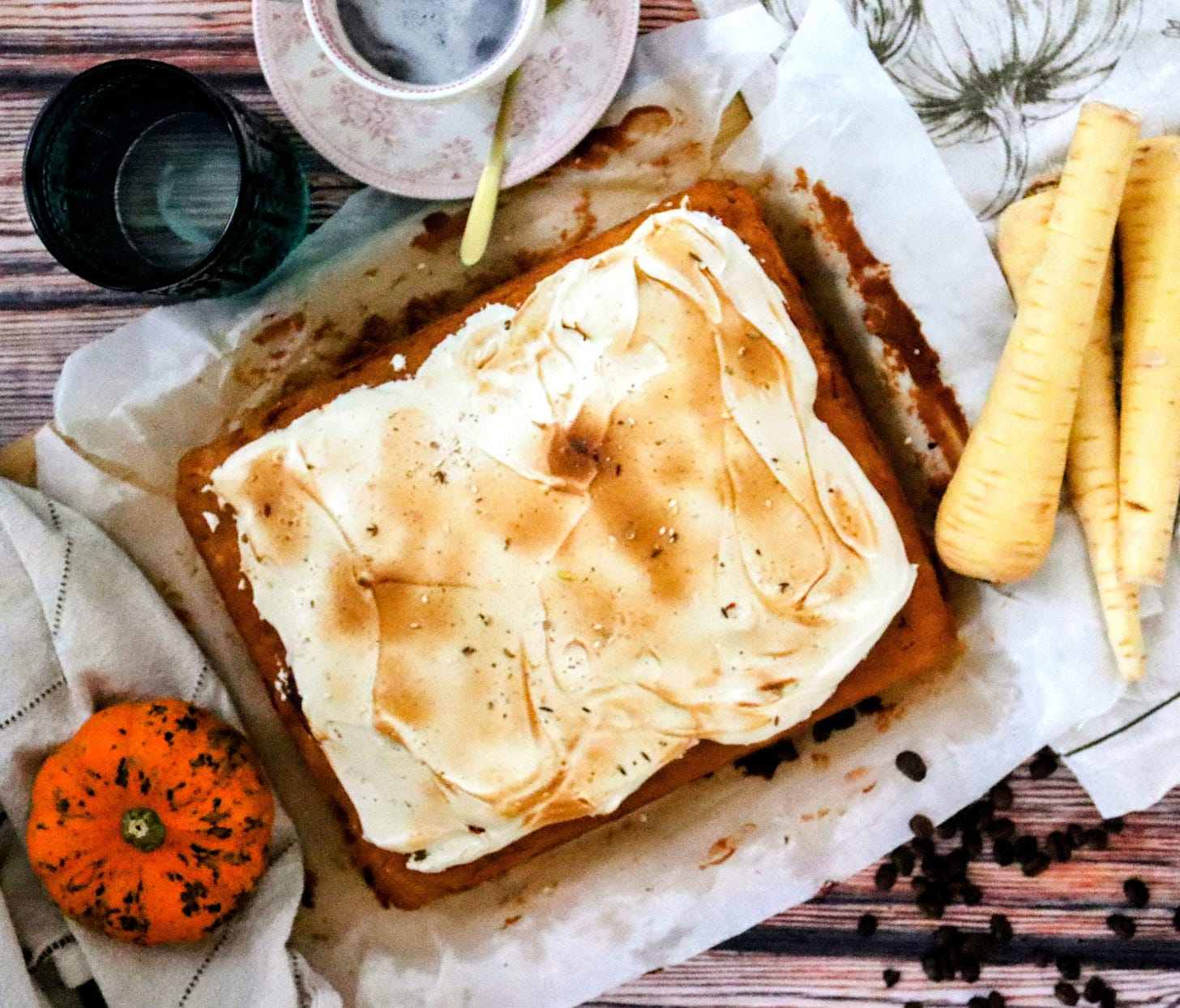 Dukkah Spiced Parsnip Cake, with Torched Coffee Meringue